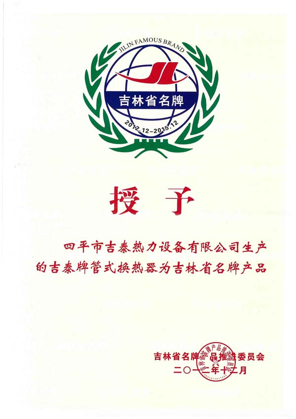四平市吉泰熱力設(shè)備有限公司始建于1996年,坐落在全國(guó)衛(wèi)生園林城市,擁有“中國(guó)換熱器基地”美譽(yù)的四平市,公司擁有雄厚的技術(shù)力量和人才優(yōu)勢(shì),國(guó)內(nèi)生產(chǎn)設(shè)備,完善的檢測(cè)手段,是吉林省集設(shè)計(jì)、開發(fā)、生產(chǎn)經(jīng)營(yíng)于一體的換熱設(shè)備生產(chǎn)企業(yè)。